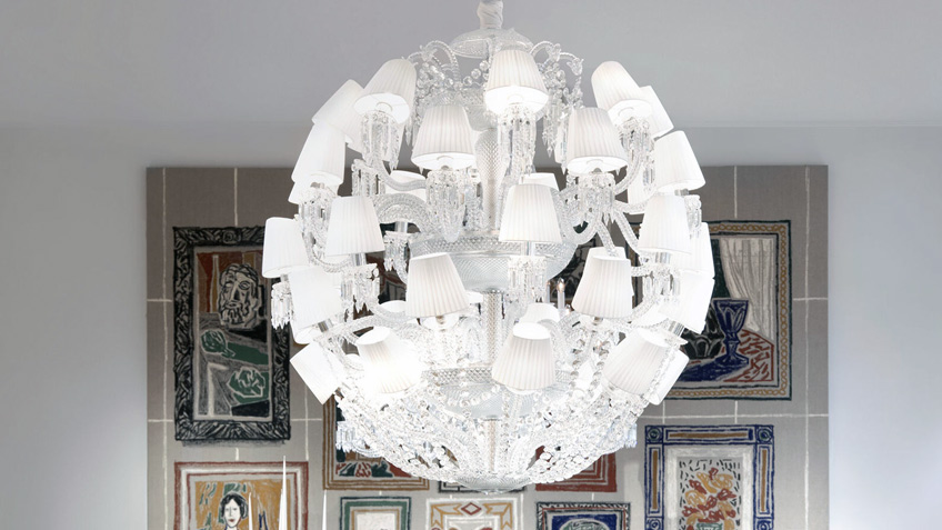 Few creations represent the greatness of Baccarat more than its chandeliers. The brand’s workshops have been producing imposing crystal chandeliers for royal courts and prestigious institutions since the 19th century. The chandeliers range from small, refined lamps with a handful of lights to massive, multi-storey showpieces for ballrooms. Many designs feature the characteristic red crystal pendants or black crystal elements.