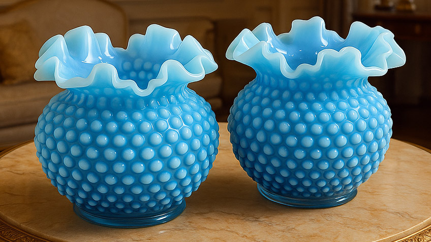 Milk Glass and Hobnail. Another major category is milk glass, known for its smooth, opaque white look. Fenton elevated this style with creative shapes, including the signature hobnail form, which features small bumps across the surface. This blend of texture and timeless white quickly became a favorite among those seeking classic elegance.