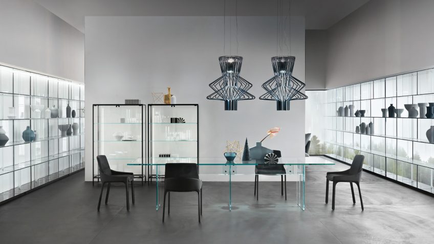 Acknowledging the importance of combining functionality with visual appeal, Fiam Italia offers a range of glass shelving systems and cabinets. These pieces enhance the ambience of any space through integrated lighting systems and unique design lines that maintain the brand’s concept of “invisible weight” and seemingly defiant structures.